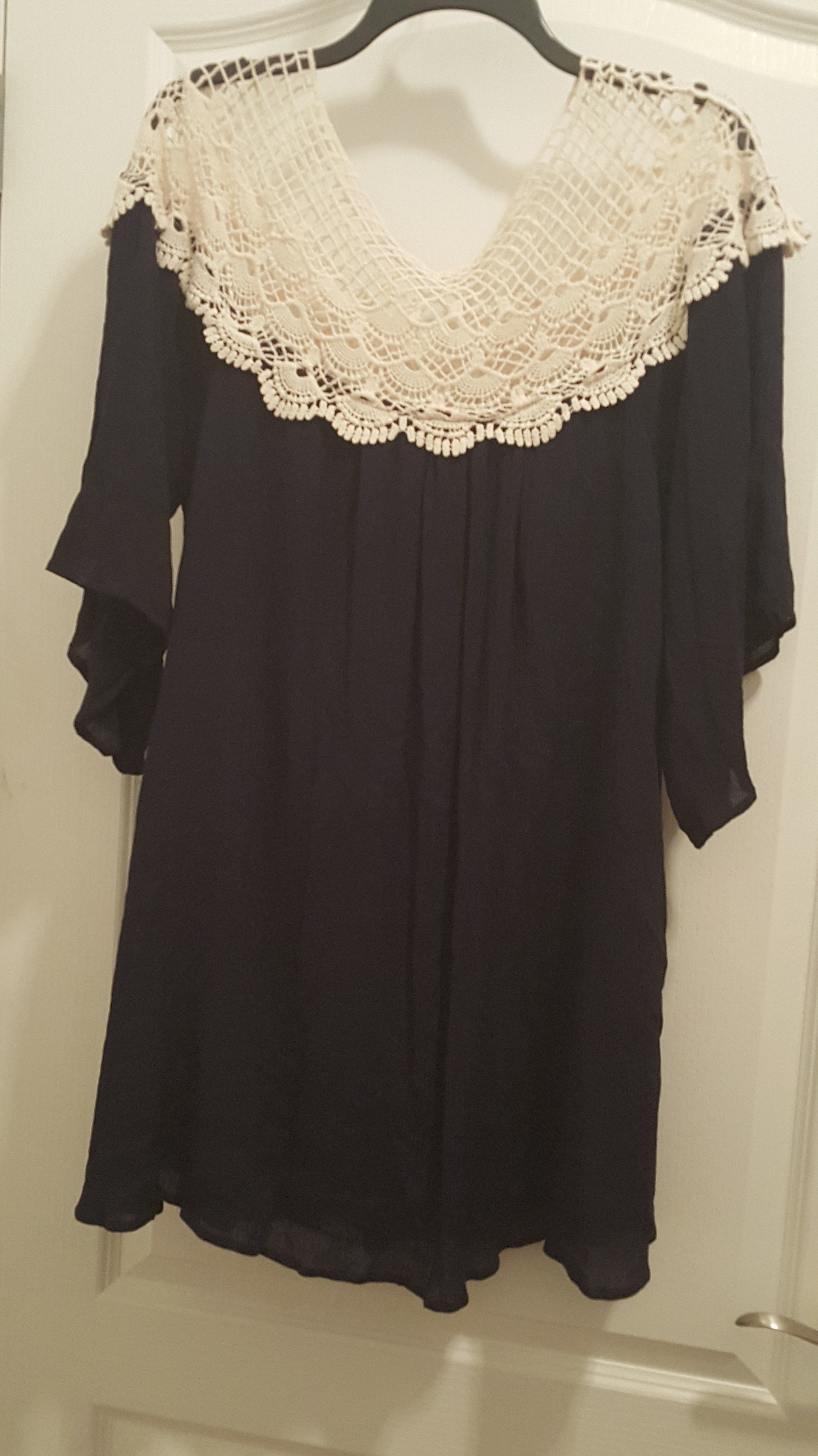 Navy Blouse with Crochet Collar