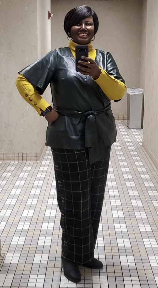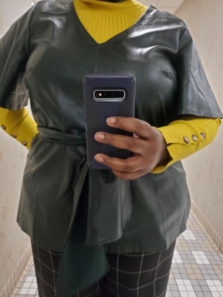 Faux Leather Tie Waist Top – Eloquii (Sold Out) Similar option here.