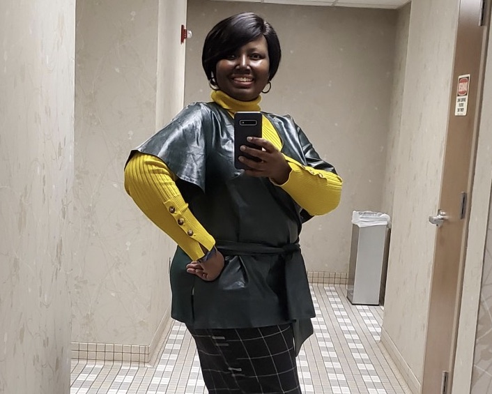 She stated when she walks into a meeting, she’s often the only woman. And if she isn’t the only woman, she is often the only woman of color. To try to blend in, she typically wears black or gray. She mentioned having an outfit that was vibrant and colorful, and a male commented on it being too bright. After that, she stopped wearing color.